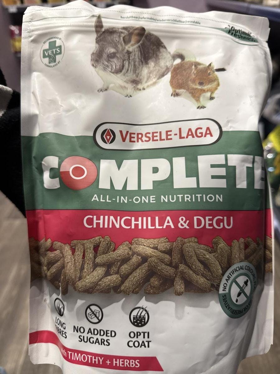 VERSELE-LAGA Complete Chinchilla & Degu — це повнораціонний екструдований корм преміум-класу, спеціально розроблений для задоволення всіх харчових потреб шиншил і дегу. Бельгійський бренд Versele-Laga з понад 85-річним досвідом створив унікальну формулу, яка забезпечує оптимальне здоров’я, енергію та довголіття ваших улюбленців. Корм для шиншил і дегу Complete — це результат тісної співпраці з ветеринарами та дослідниками, що гарантує найвищу якість харчування.