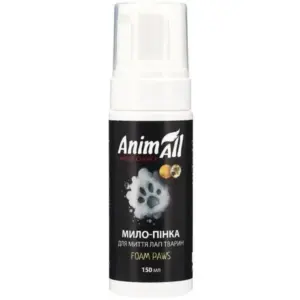 Флакон 150 мл компактний та зручний для зберігання біля вхідних дверей або у автомобілі. АнімАлл Мило-пінка не потребує змивання водою, що робить процедуру швидкою та комфортною як для господаря, так і для тварини.