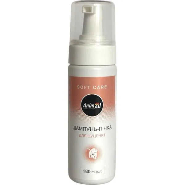 AnimAll Шампунь-пінка для цуценят 180 мл — це інноваційний засіб для делікатного очищення шерсті наймолодших вихованців. Бренд AnimAll створює якісну косметику для тварин, що поєднує ефективність та безпеку. Цей шампунь-пінка розроблений спеціально для чутливої шкіри цуценят, забезпечуючи м’який догляд без подразнень та дискомфорту.