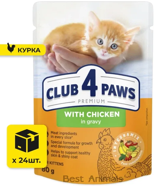 Замовляйте CLUB 4 PAWS Преміум для кошенят з безкоштовною доставкою по Україні! Подбайте про здоровий старт життя вашого маленького друга з якісним вологим кормом преміум-класу.