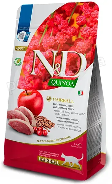 FARMINA N&D QUINOA HAIRBALL ADULT — преміальний корм для котів з ефектом виведення шерсті