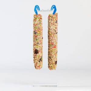 Фруктовий колосок містить тільки натуральні інгредієнти: зернові культури (просо, пшениця, овес), сушені фрукти та ягоди, мед, вітамінно-мінеральні добавки. Такий склад забезпечує оптимальне співвідношення білків, жирів та вуглеводів, необхідних для активного життя вашого улюбленця.