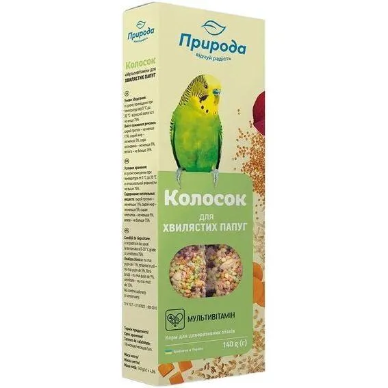 Природа Колосок Мультивітамін для папуг 140г — це преміальні зернові ласощі, розроблені спеціально для декоративних птахів. Бренд «Природа» має багаторічний досвід у виробництві якісних кормів та добавок для домашніх улюбленців. Колосок Мультивітамін створений для підтримки здоров’я, активності та гарного настрою ваших пернатих друзів. Ці ласощі підходять для хвилястих папуг, корелл, нерозлучників та інших середніх і малих видів декоративних птахів.