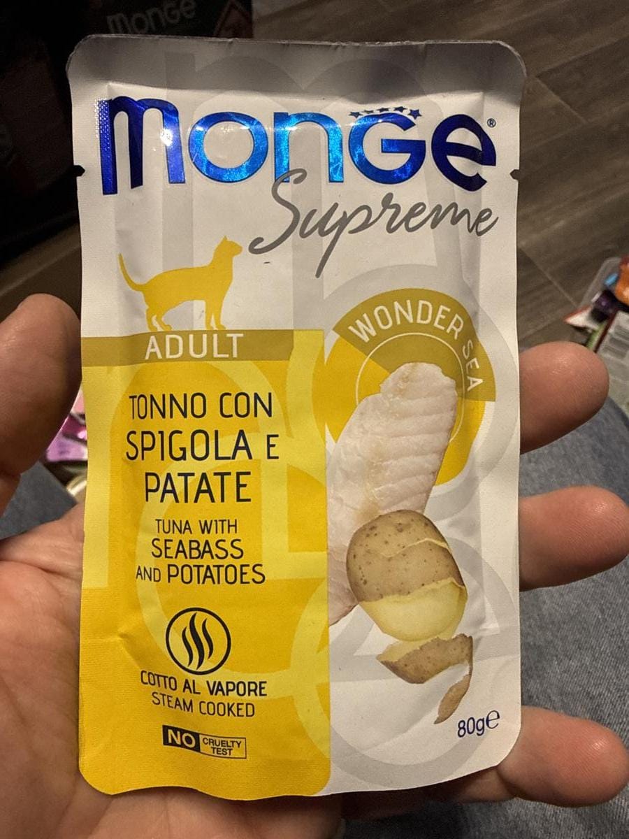 A: MONGE CAT WET ADULT тунець з сибасом можна використовувати як щоденний основний раціон або чергувати з сухим кормом преміум класу.