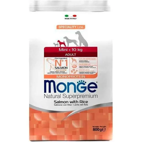 Замовте MONGE DOG MINI ADULT з лососем та рисом 0,8 кг з безкоштовною доставкою по Україні! Подаруйте вашому улюбленцю смачне та корисне харчування преміум-класу за вигідною ціною 441 грн.