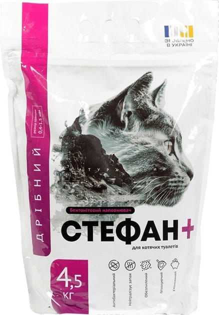 Натуральний бентонітовий наповнювач Стефан+ для котячих туалетів 4,5 кг