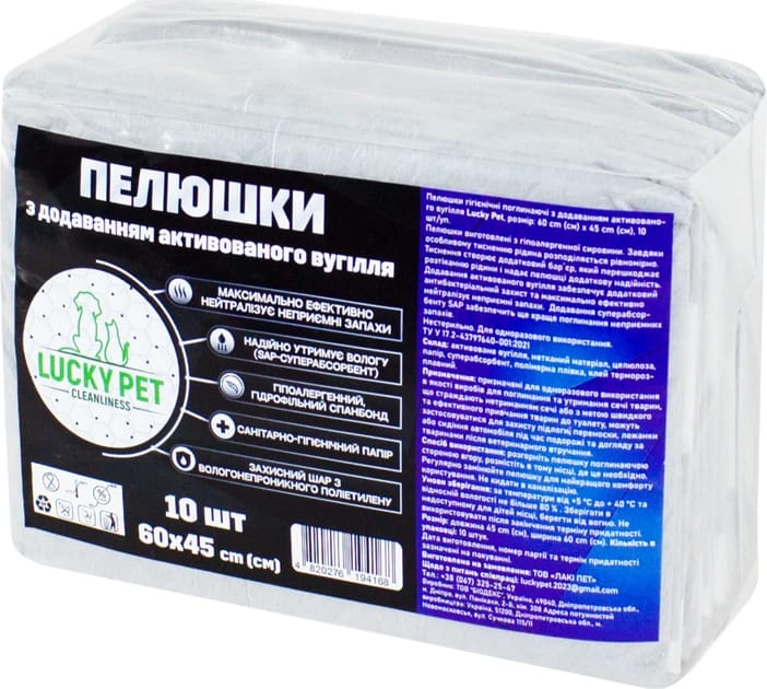 Замовте гігієнічні пелюшки Lucky Pet з активованим вугіллям прямо зараз з безкоштовною доставкою по Україні! Забезпечте своєму улюбленцю комфорт, а своєму дому — чистоту та свіжість.