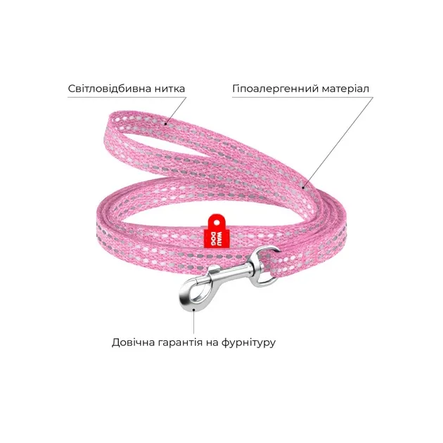 WAUDOG Re-cotton повідець світловідбиваючий — це інноваційний аксесуар преміум-класу, створений з турботою про довкілля та комфорт вашого улюбленця. Виготовлений з відновленої бавовни, цей повідець поєднує екологічність, міцність та стильний дизайн. Розмір XS з шириною стрічки 10 мм та довжиною 200 см ідеально підходить для котів, кошенят, цуценят дрібних порід та мініатюрних собак вагою до 5-7 кг. Ніжний рожевий колір та світловідбиваючі елементи роблять прогулянки безпечними навіть у присмерку.
