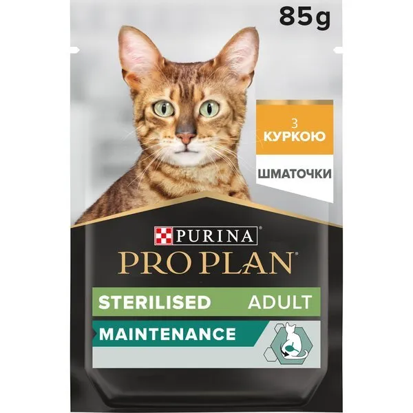 Після стерилізації метаболізм котів змінюється, що може призвести до набору зайвої ваги та проблем з сечовидільною системою. PRO PLAN Sterilised Nutrisavour з куркою враховує ці особливості та забезпечує збалансоване харчування з оптимальним вмістом калорій.