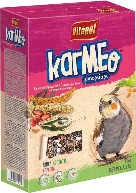 Корм для німфових папуг VITAPOL KARMEO PREMIUM розроблений спеціально для німф (корелл) усіх вікових категорій. Німфові папуги — це середні за розміром папуги родом з Австралії, які потребують особливого раціону, багатого на насіння, злаки та мінерали. VITAPOL KARMEO ідеально підходить як для щоденного годування дорослих птахів, так і для молодих німф у період формування організму.